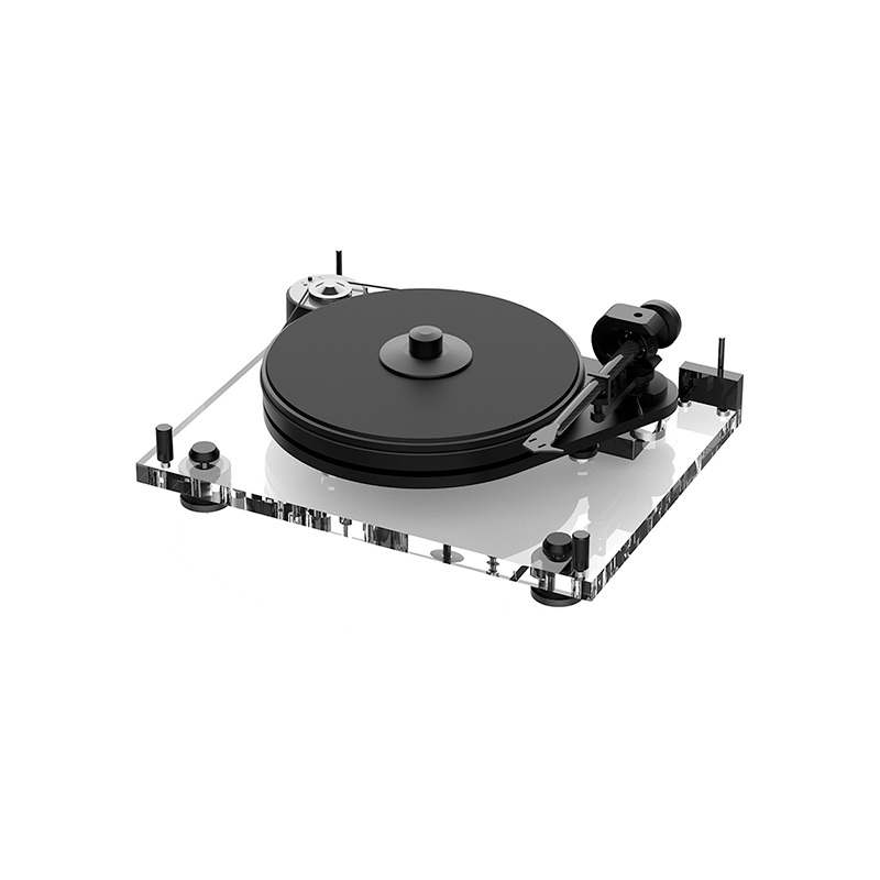 Giradischi a trazione a cinghia con base in acrilico trasparente. Sistema di sospensione magnetica del sub-chassis in CORIAN che isola piatto e braccio. Piatto da 300mm in MDF/Vinilico con struttura a sandwich e disc clamper in dotazione. Braccio in carbonio Pro-Ject 9CC EVO fissaggio cardanico su 4 punti e cuscinetti ABEC7. Contrappeso smorzato TPE. Azimuth e VTA regolabili. Motore separato. Regolazione elettronica della velocità 33,45 giri. Piedini in Sorbothane ad altezza regolabile. Connettore bilanciato mini XLR 5pin. Connettori RCA placcati oro. Cavo RCA semi-simmetrico di qualità in dotazione. Peso 11Kg.