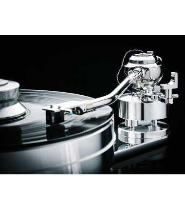 Giradischi Hi-End con design ad alta massa. Trazione a cinghia. Velocità 33/45 giri con regolazione elettronica. Nuovo braccio Project da 12" in alluminio sospeso su tre punti tri-pivot. Motore disaccoppiato con sistema di trazione Fly-wheel. Piatto da 10,55Kg disaccoppiato magneticamente. Cuscinetto invertito in ceramica. Base antirisonante in MDF con angoli arrotondati. Sistema di sospensione su piedini regolabili dall'alto. Processo di vernicatura a 8 mani, per una superficie laccata aspecchio. Peso 37Kg.