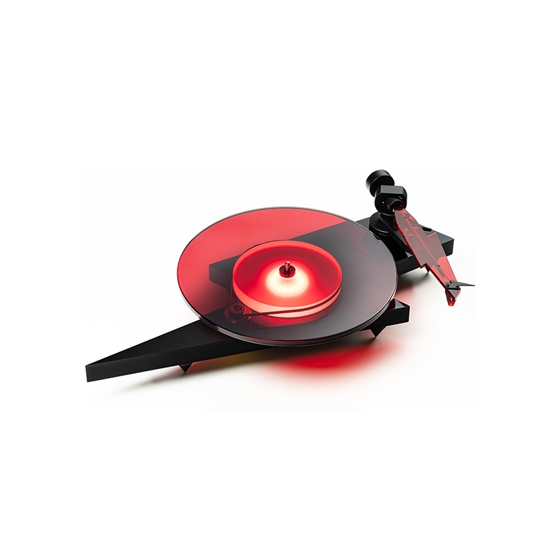 Questo nuovo modello, realizzato a mano in Europa, richiama platealmente la forma del fulmine nel logo della band e presenta un piatto in vetro rosso traslucido ad alta massa spesso 10 mm, sotto il quale spicca il plinto in MDF nero dipinto a mano. A impreziosire questa estetica già molto originale, troviamo un anello LED posizionato sotto il sub-piatto in acrilico che illumina l’intera unità di trasmissione a cinghia.