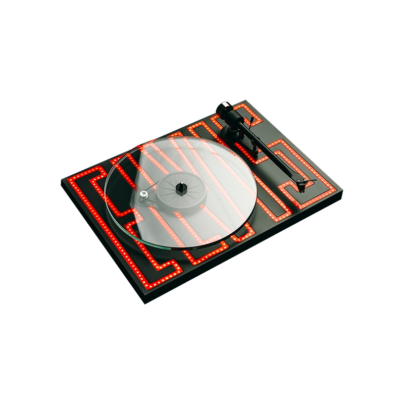 Elvis Turntable fa parte della Artist Collection del noto costruttore austrico, ed è, prima di tutto, un eccellente giradischi. Piedini appositamente selezionati che isolano il giradischi dalle vibrazioni, sistema di controllo della velocità con trazione a cinghia collegata a un sottopiatto in composito ABS rinforzato con fibra di vetro, e montato su un cuscinetto ultra preciso da 0,001 mm con asse in acciaio temprato e boccola in ottone. A differenza di molti modelli che utilizzano motori a corrente continua non regolati, Pro-Ject T2 adotta un motore a corrente alternata con velocità elettronica controllata e commutazione automatica tra 33 e 45 giri al minuto. Il risultato è un sistema di trasmissione stabile, preciso e silenzioso. Il braccio del giradischi, lungo nove pollici, è realizzato in un unico pezzo di alluminio e utilizza un cuscinetto a basso attrito che garantisce la massima precisione durante l’ascolto. Il porta testina integrato elimina le vibrazioni indesiderate e rappresenta un netto miglioramento rispetto alle soluzioni rimovibili. Il meccanismo anti-skating regolabile a molla, abbinato alla cartuccia Sumiko Rainier pre-tarata con puntina ellittica in diamante, consente di sfruttare appieno il potenziale del sistema per una riproduzione hi-fi autentica.