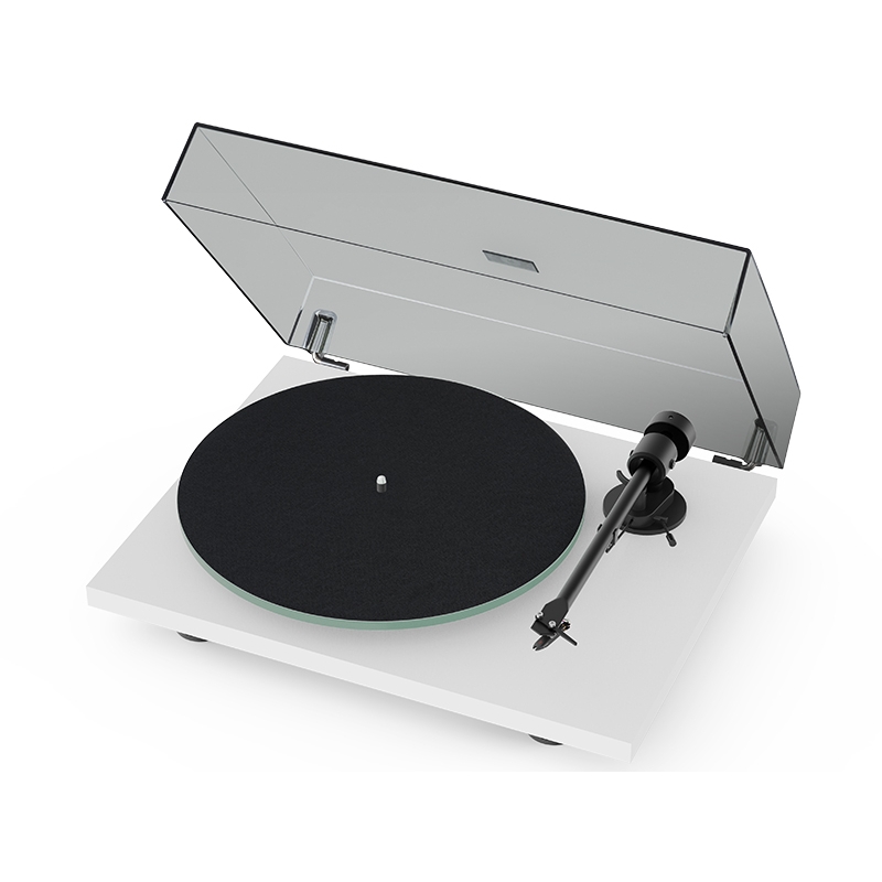 Giradischi compreso di braccio e di testina Ortofon OM 10. Trazione a cinghia, regolazione elettronica della velocità 33/45 giri. Chassis lavorato CNC senza spazi interni o plastica. Piatto in vetro sabbiato da 8mm di spessore. Motore in DC. Sub platter antirisonante. Braccio diritto in alluminio da 8,6". Piedini speciali di disaccoppiamento. Cavo di segnale semi-simmetrico in dotazione. Coperchio in dotazione. Connettori d'uscita RCA. Peso kg. 3,8.